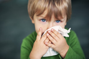 Portrait of a sick boy cleaning his nose